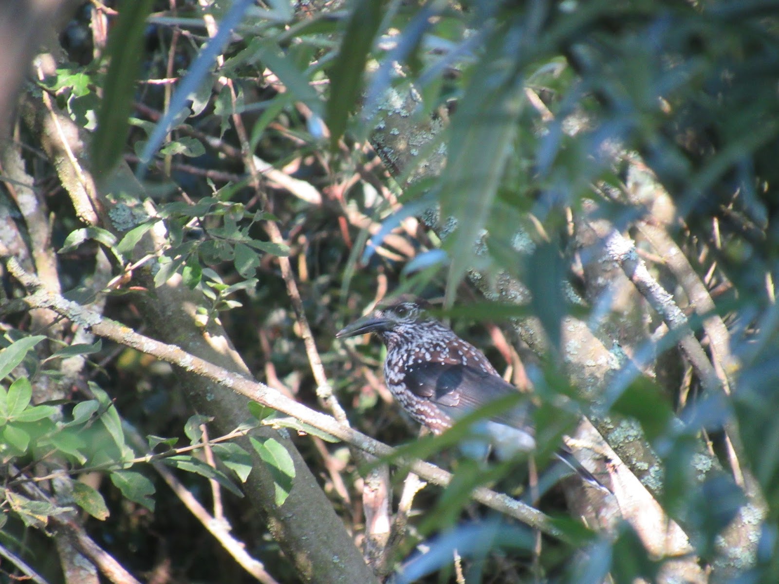 Wyszłam rano przed dom. Pobiegłam na pole. Na początku nic się nie działo, ale zaraz potem usłyszałam dziwny głos. Trochę sójka, ale z inną nutką. Zobaczyłam ptaka lądującego na wielkim dębię. Zrobiłam zdjęcie na maksymalnym zoomie. Popatrzyłam na obrazek i jeszcze przybliżyłam… WOW! ORZECHÓWKA! Byłam bardzo zdziwiona, bo ten ptak jest raczej górski. Gatunek 123!