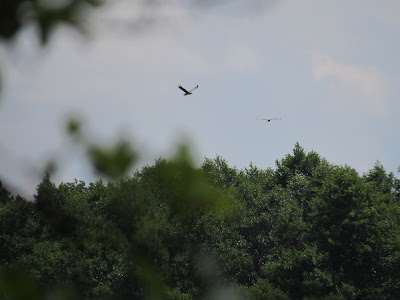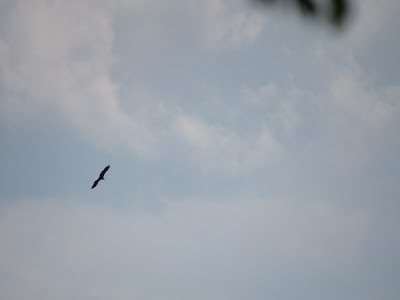 Tam (wreszcie!!!) coś było- kormorany. Siedziały daleeeko na palikach przy niewielkiej zatoczce. Potem zobaczyłam jakiegoś drapola. Potem nadleciał drugi. Popatrzyłam na nie przez lornetkę i… Bieliki! Zdjęcia nie powalają ani skadrowaniem ani jakością, ale zawsze coś.