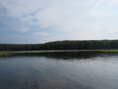 Ale ptaków- nie było. Słyszeliśmy tylko dalekie leśne ćwierkania. W końcu dotarliśmy na większe zakole jeziora.
