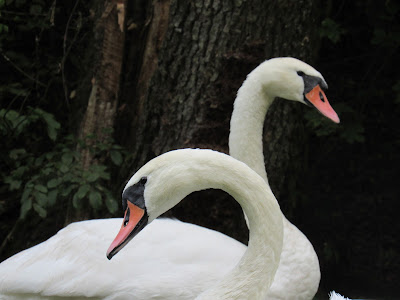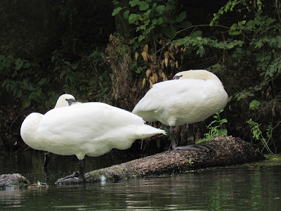 Zaraz po zwodowaniu przepłynęliśmy tuż obok niepłochliwych krzyżówek. Zrobiłam im kilka zdjęć, ale że każdy chyba ma zdjęcie kaczki, nie wstawiam ich tu. Po chwili wypłynęliśmy na nieduże jeziorko. Było tam cicho i spokojnie. Dlatego to miejsce do żerowania wybrała sobie rodzinka łabędzi niemych.