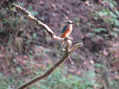 Pływały tam jeszcze krzyżówki i pojawił się również gągoł. Przeleciał blisko, ale szybko. Cisza niepodzielnie panowała na zbiorniku. Tylko my i przyroda. Kiedy popłynęliśmy dalej, naszym oczom ukazał się piękny widok czystej, dzikiej rzeczki i wspaniałego, starego boru. Woda była bardzo czysta. Zobaczyłam trzy pliszki stojące na zwalonym pniu. Były to pliszki żółte. Wyjątkowo wredne. Pojawiały się w każdym momencie kiedy nie mogłam wyjąć aparatu, np. przy trudnych zakrętach czy w chwili gdy kajak obracał się i płynął tyłem. Znikały w chwili gdy aparat był przygotowany. Nagle coś przemknęło szybko nad wodą. Turkusik! Zimek (a raczej: zimka, bo to samica)! Usiadł na chwilę na drzewku, ale zerwał się. Jednak nie odleciał daleko i zdołałam zrobić mu bardzo dobre zdjęcie, którego (niestety) nie mogę tu pokazać, bo idzie na konkurs. Ale są inne.