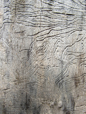 Sfotografowałam również niezwykłe wzory wytworzone przez korniki na drzewie J Wyglądają jak azteckie: